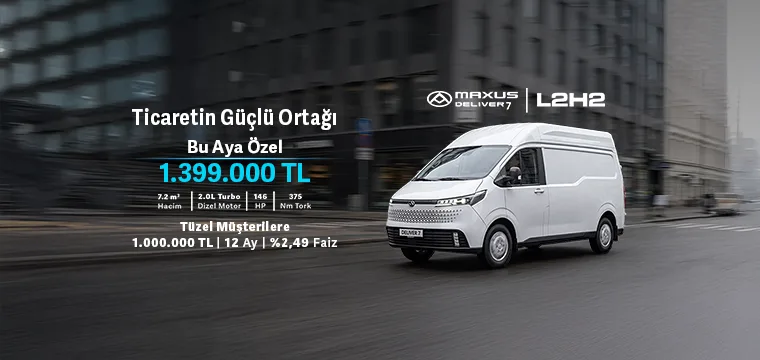 Tüzel müşterilere sunulan kredi kampanyası Doğan Trend Otomotiv Tic. Hiz. Ve Tekn. A.Ş.’nin kredi finansal çözüm ortaklarından Garanti Bankası ve Yapı Kredi Bankası’nda yeni bir duyuru yapılıncaya kadar 30/04/2026 tarihine kadar MAXUS Yetkili Satıcılarından satın alınacak 0 km Deliver 7 L2H2 modellerinde geçerlidir.